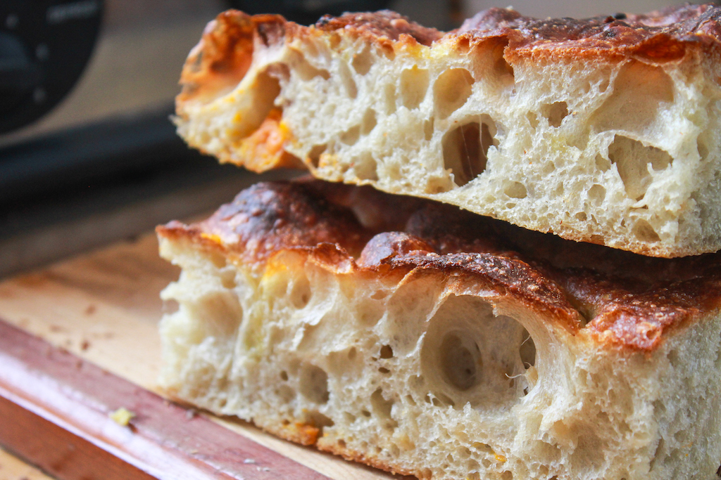 I try my hand at shaping the newly proofed dough, with varying degrees of success. Katy and Matt make it look effortless, pulling and pinching dough into uniform balls in seconds while I pull and tug it around to the point I confuse myself. They sweep in to show me the ropes and save the poor dough ball. 3pm rolls around and the day is winding down. We thoroughly clean the kitchen top to bottom and snack on fresh focaccia.