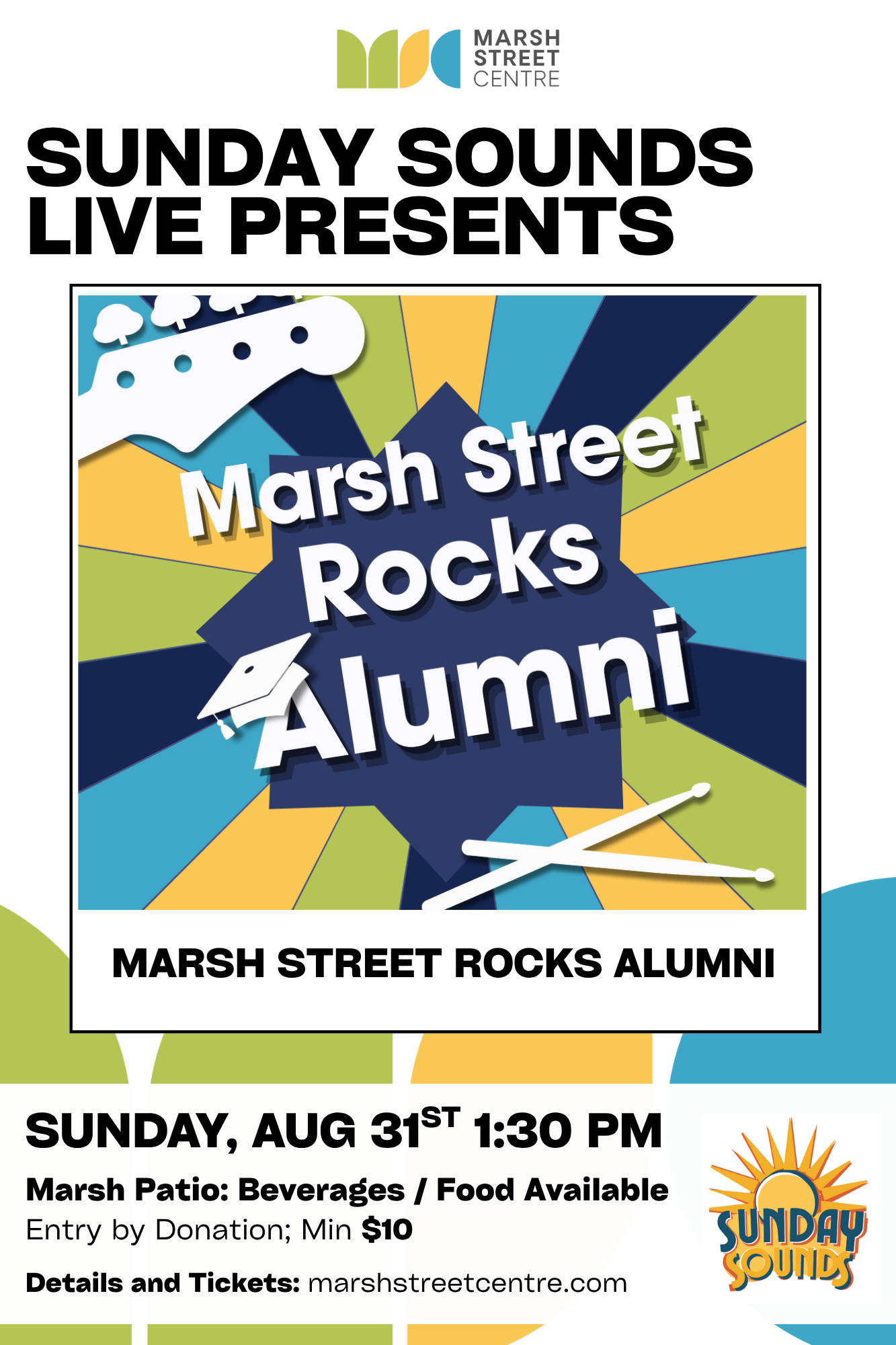 Graduates of Marsh Street Rocks music education program are back together to entertain the community. At least 3 bands are planned to play in the end of summer concert on the Marsh Street Centre patio.