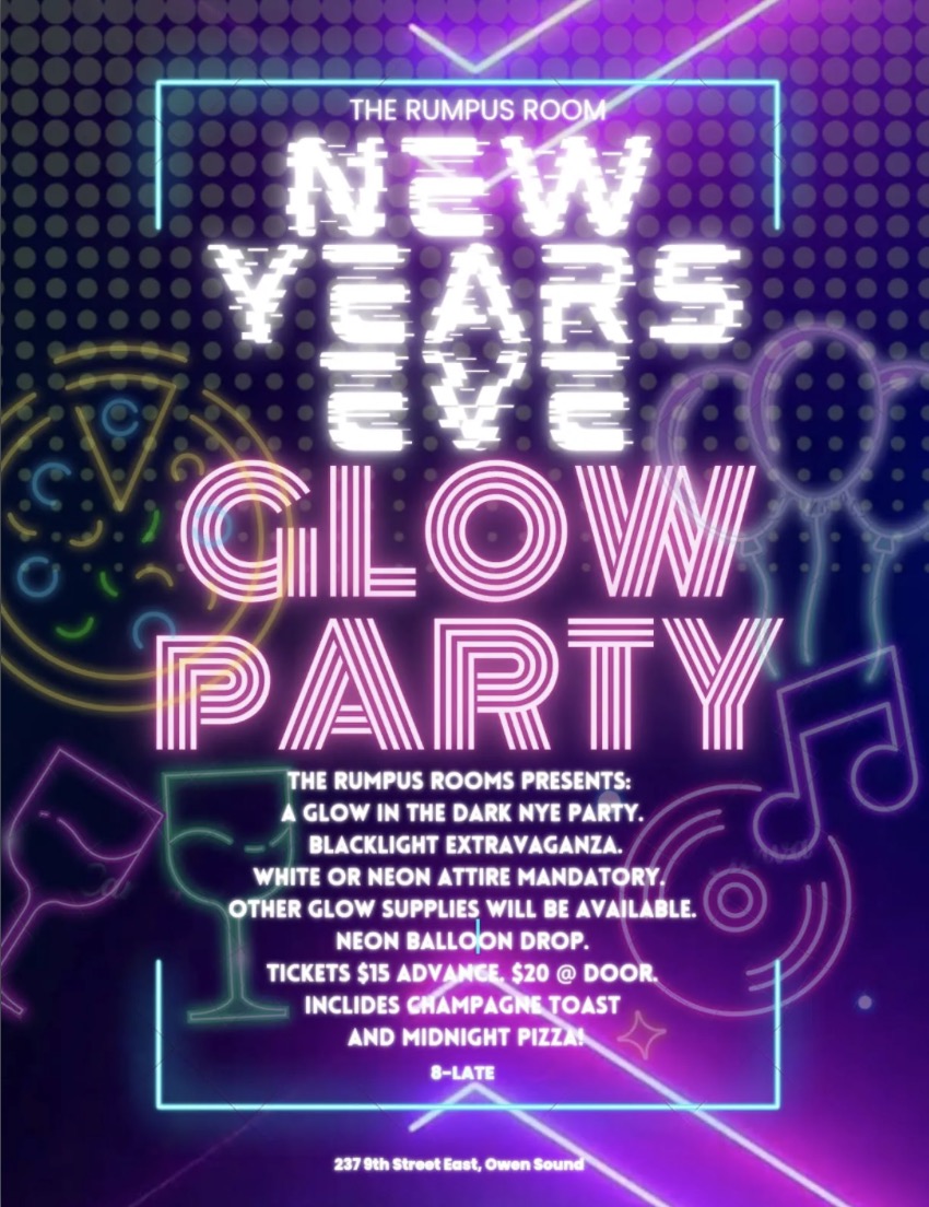 Rumpus Room 237 9th Street East, Owen Sound, ON, CanadaCalling all rumplings and neon lovers! Come decked out in your best neon or white attire for a NYE you won’t forget. We’re cranking out the black lights for this…