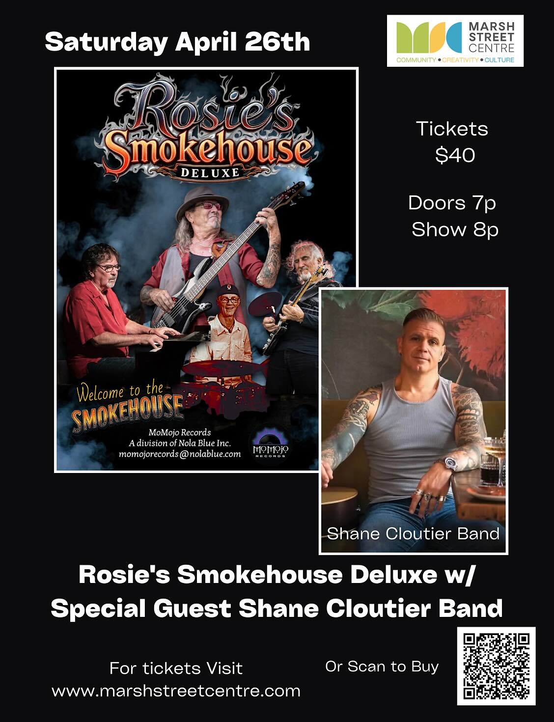 The Marsh Street Centre 187 Marsh Street, Clarksburg, Ontario, CanadaRosie’s Smokehouse is a hard-driving Blues/Rock band that brings a live show that is gritty, raw, soulful, and truly on fire from the drop of the first beat. Add the…