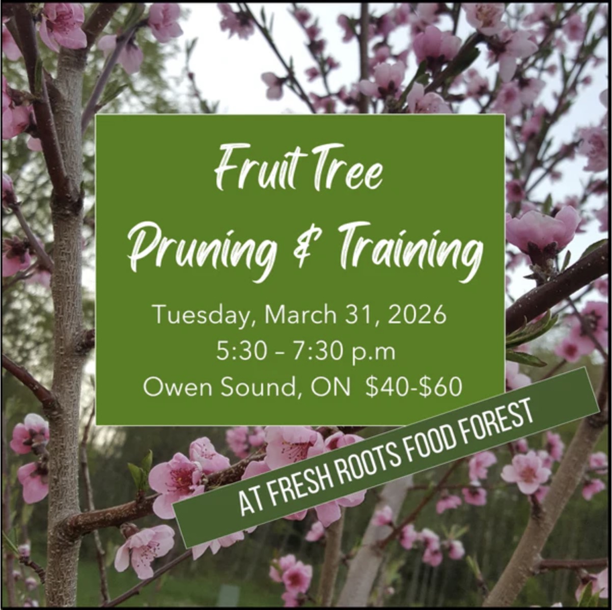 Through this workshop you will learn how to prune a variety of fruit trees, how and when to train branches over pruning branches, how to assess the health of fruit… |