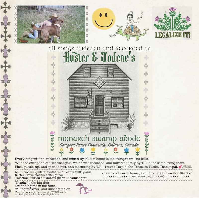 Often soft-spoken with a bit of drawl, Mutt carries us into his world where meaningful truths and hilarities collide with hazy psych-folk, geographic poetry and affirmations of peace. Weaving in and out of reality and fiction, through stories of robberies, road trips and camp cookouts, listeners are taken on a joyride through the winding roads of Colpoy’s Bay, to the mountainous head of Sleeping Giant, and everything in between.