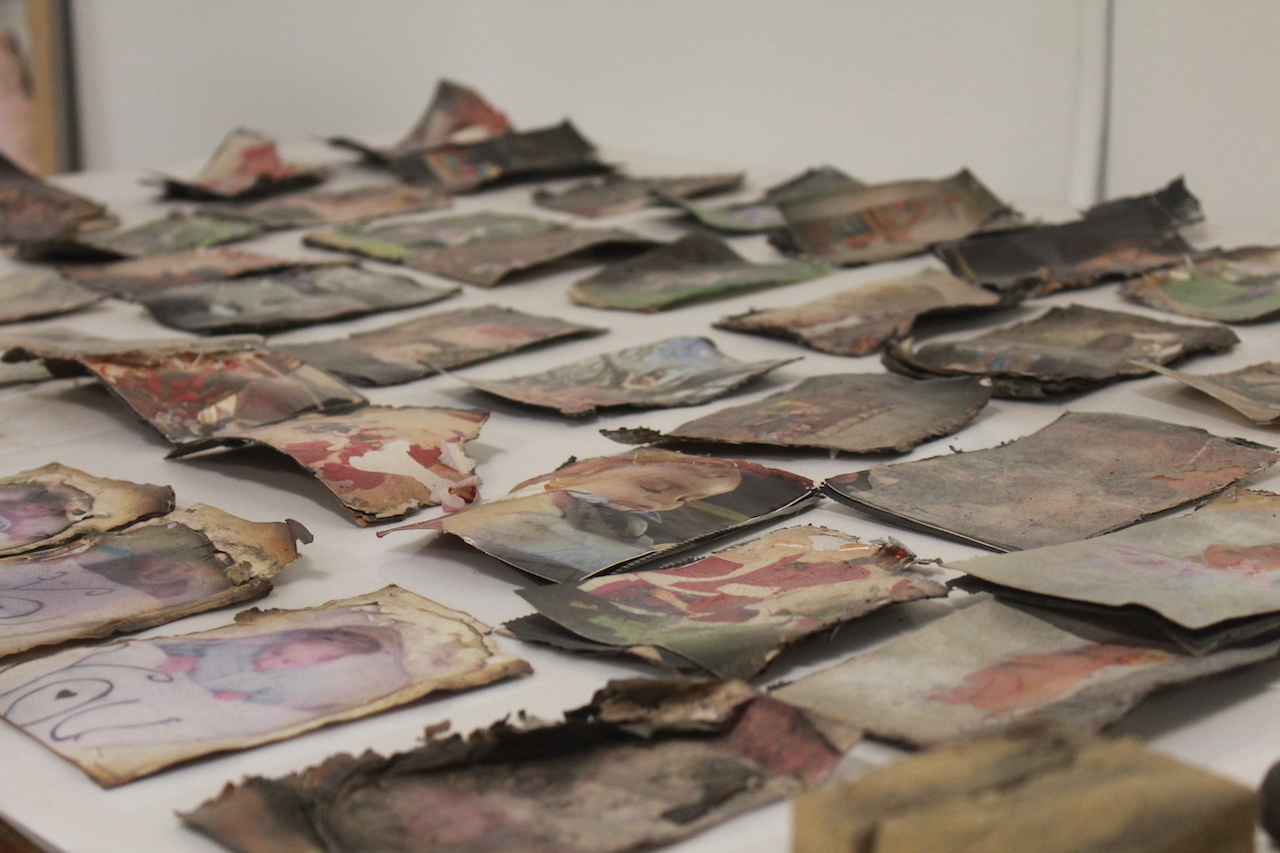 Amber takes me on a tour of her space and shows me a few ways she can lift dirt, manipulate materials, and identify what has to happen to seamlessly repair what looks like, to me, an unrepairable painting, document, or photograph. It’s a fascinating practice; the chemical solutions, the light exposure, the meticulous nature of pain-stakingly lifting dirt from a canvas with a skewer tipped in cotton gauze. The skill, the passion, the attention to detail.