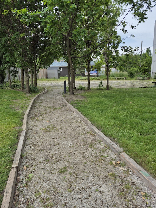 The third description is actually the most accurate. It is, in fact, property of the Georgian Shores United Church and the pathway is accessible from the parking lot on the southeast edge of the property. The pathway leading to this surreptitious site is met with a treed archway before opening up to a small labyrinth titled The Peace Labyrinth. Aptly named, since labyrinths are known to calm the mind and bring a person to a state of zen.