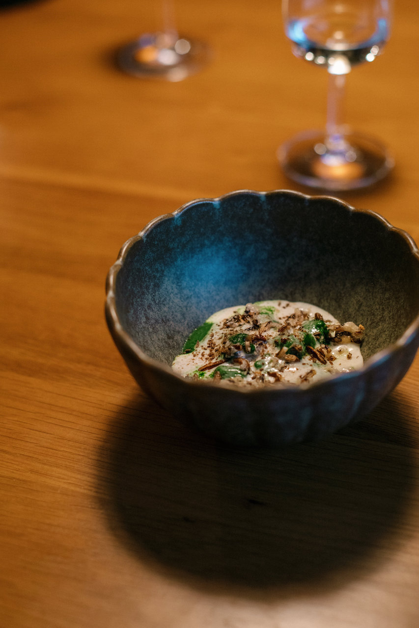 In the middle of Shanghai is a historic neighbourhood called the French Concession, a relic of European colonialism that Jeremy used to visit on his wanderings through the city. Exactly halfway through the meal, its namesake course arrives: a thoroughly Parisian bite of brown butter-roasted sourdough, foie gras ice cream, and sour plum jam. A playful departure that encourages us to consider the menu as narrative, as geography.