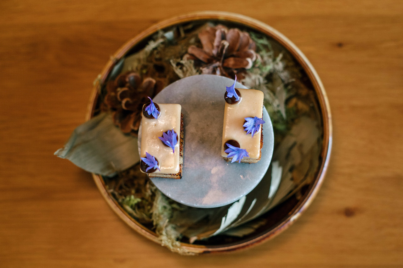The Eastern analogy isn’t accidental. All of the dishes on any given evening’s unpublished, cryptically pictogrammed tasting menu are directly inspired by Jeremy’s years working in high-end kitchens in Hong Kong and China. Yet with a name like The Pine, and a conspicuous hyper-focus on local and seasonal ingredients, there’s a deep current of Canadiana present as well.
